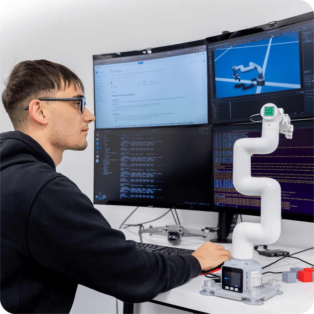 Unsere Teams entwickeln KI-Systeme, Robotiksoftware, digitale Zwillinge und Simulationsplattformen, gestützt auf über 30 Jahre Engineering-Erfahrung in Branchen wie Robotik, Luft- und Raumfahrt, Gesundheitswesen und intelligenter Infrastruktur.